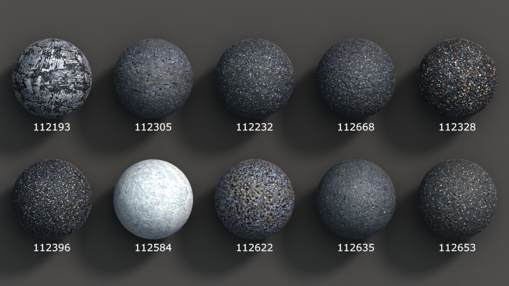 10 PBR tileable materials containing diffuse, normal, roughness, displacement, ambient occlusion textures, all in 4096x4096.