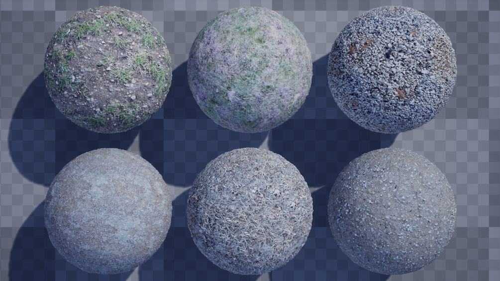 24 PBR tileable materials containing diffuse, normal, roughness, displacement, ambient occlusion textures, all in 4096x4096.